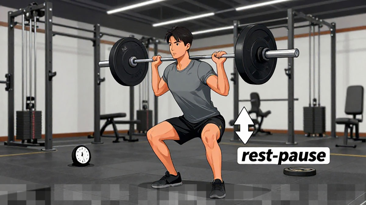 Teknik Rest-Pause adalah metode latihan yang membagi set menjadi beberapa mini-set dengan jeda singkat di antara setiap repetisi. Misalnya, jika Anda mampu melakukan 12 repetisi maksimum pada bench press, Anda dapat mengerjakan 8 repetisi, beristirahat selama 10–15 detik, dan kemudian melanjutkan dengan 4 repetisi tambahan. Pendekatan ini memanfaatkan kelelahan otot parsial, sehingga memungkinkan otot untuk melakukan lebih banyak kerja total dibandingkan dengan set tradisional.